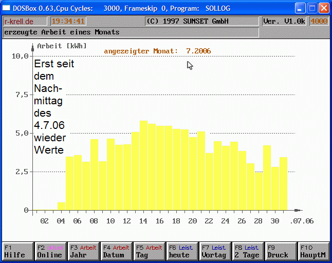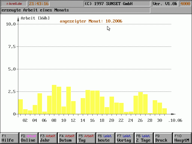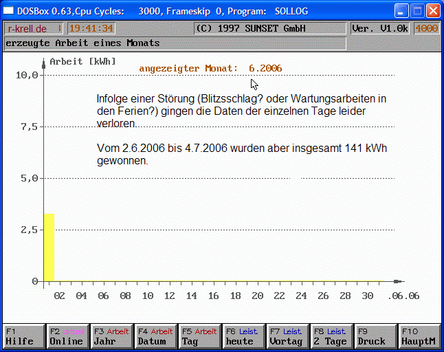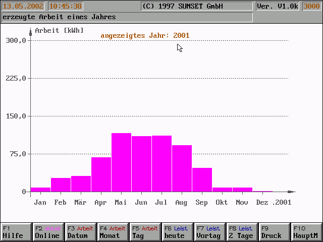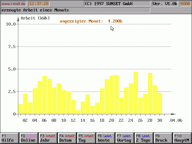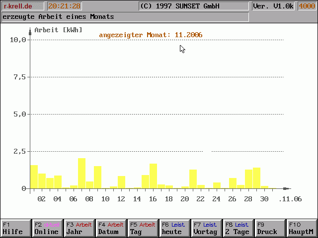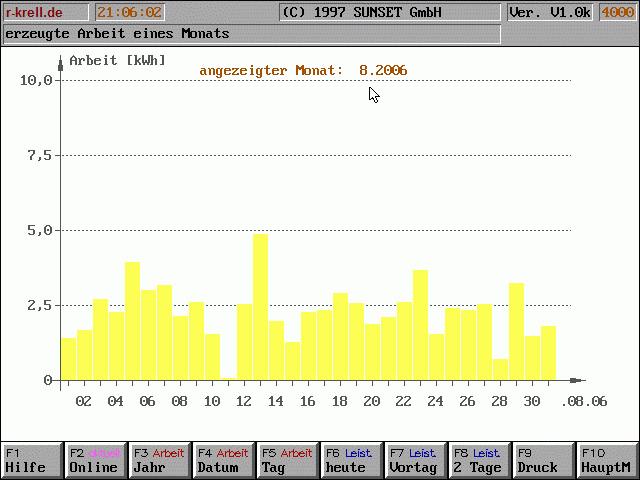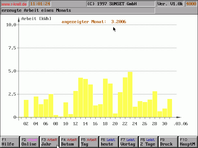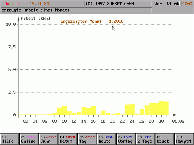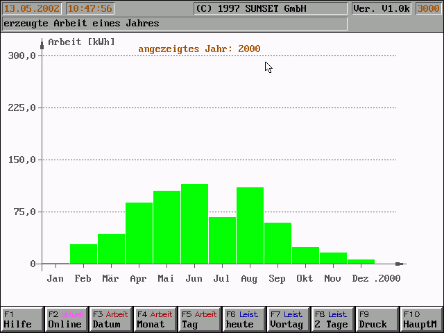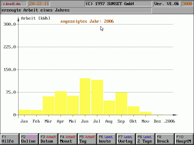 Um das Bild eines einzelnen Monats in voller Größe zu sehen, müssen Sie den angezeigten Bildernamen oben in die Adress-Zeile Ihres Browsers eintippen. Um beispielsweise den März 2002 (JJ=02, MM=03) zu sehen, tippen Sie dort, wo jetzt noch „https://www.r-krell.de/fv-ganz2000.htm" steht, die neue Adresse „https://www.r-krell.de/sol0203.gif" ein. Dann erscheint das Bild und lässt sich durch Rechtsklick ins Bild und „Ziel speichern unter.." auch auf Ihrem Rechner speichern.