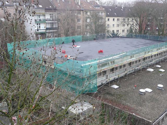 Am 25. Februar 2011 wird noch an der Dachhaut gearbeitet -- die endgültige Oberfläche fehlt noch! |