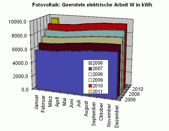 Bis zum 30.10.2012 hat die neue Anlage (in gut 15 Monaten Betrieb) schon 38773 kWh el. Energie gewonnen -- mehr als die alte Anlage in 12 Jahren! |