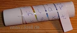 Schon die alten Griechen haben dieses Transpositionsverfahren benutzt. Der Klartext wird zeilenweise auf ein Band bzw. auf einen um einen Zylinder gewickelten Papierstreifen geschrieben. Nach dem Abwickeln stehen die Buchstaben in scheinbar unsinniger Reihenfolge auf dem Papierstreifen und lassen den Klartext nicht ohne Weiteres erkennen. Zum Entschlüsseln muss ein Zylinder mit gleichem Radius bzw. gleichem Umfang verwendet werden -- der Zylinder-Umfang ist praktisch der Schlüssel.