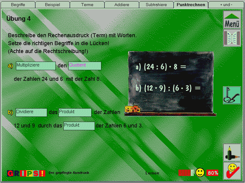 Bei den Textaufgaben kann aber leider entweder nur entschieden werden, ob ein vom Programm vorgestellter ausführlicher