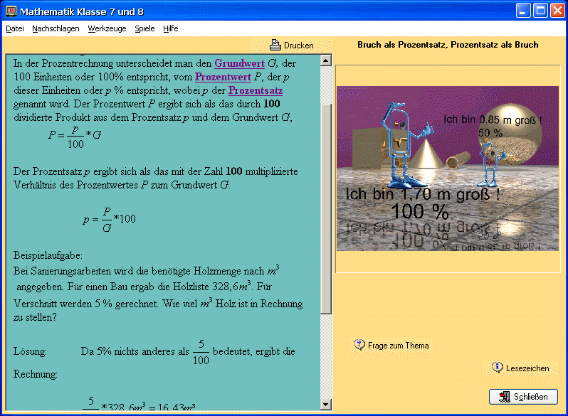 Anleitungstexte erreichbar. Neben den vielen Übungen mit Lösungen kann man zum Prozentrechnen, zu Relationen und