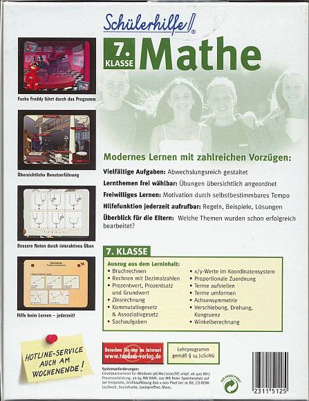 Ende Juli 2004 habe ich bei Aldi (Süd) für 4,99 € das Programm Schülerhilfe - 7. Mathe