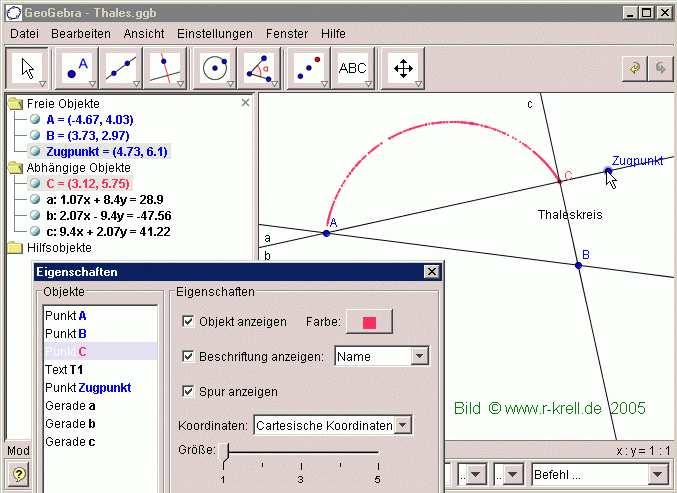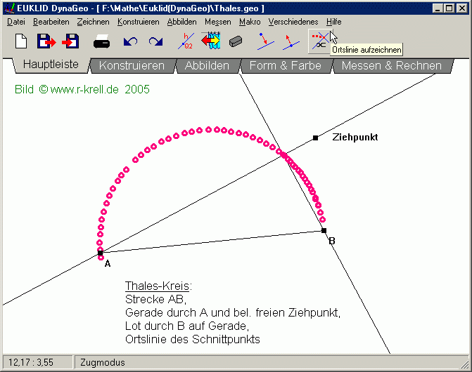 mit dem Internet-Explorer. Das Beispiel zum Thales-Kreis findet sich hier (und verlangt ohne eigenes Euklid-DynaGeo auch eine gewisse Ladezeit):