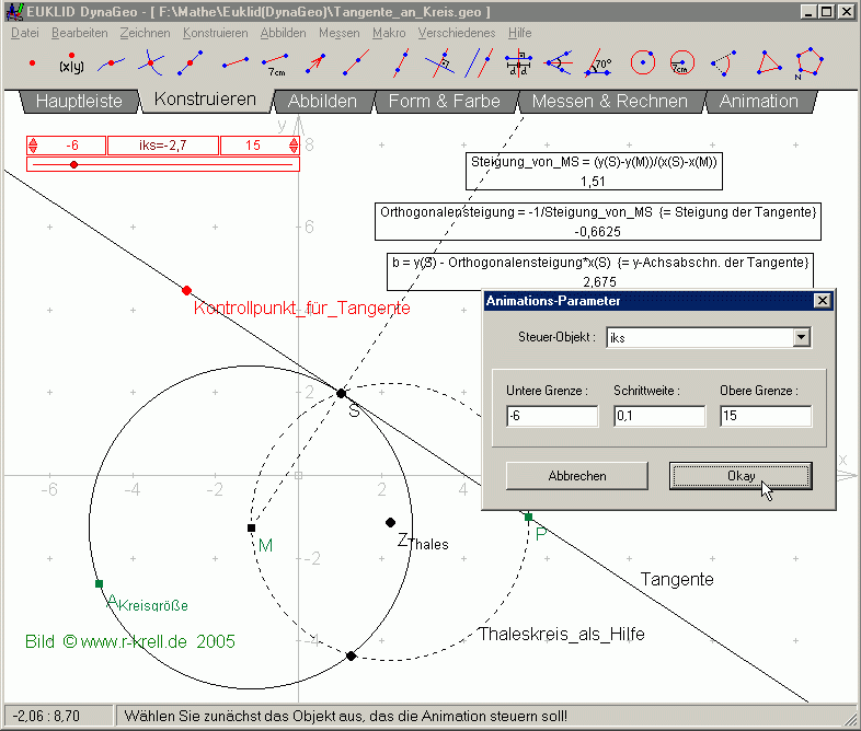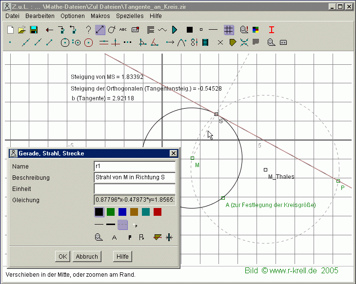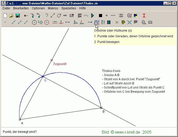 1. Thaleskreis (Aufgabenstellung s.o.): Das