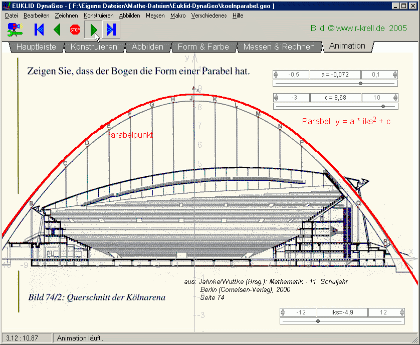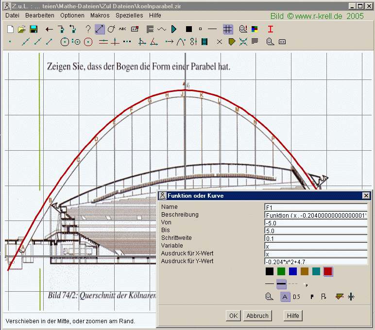 4. Parabelform der Kölnarena: In Euklid-DynaGeo kann immer nur höchstens ein Bild im .bmp-Format